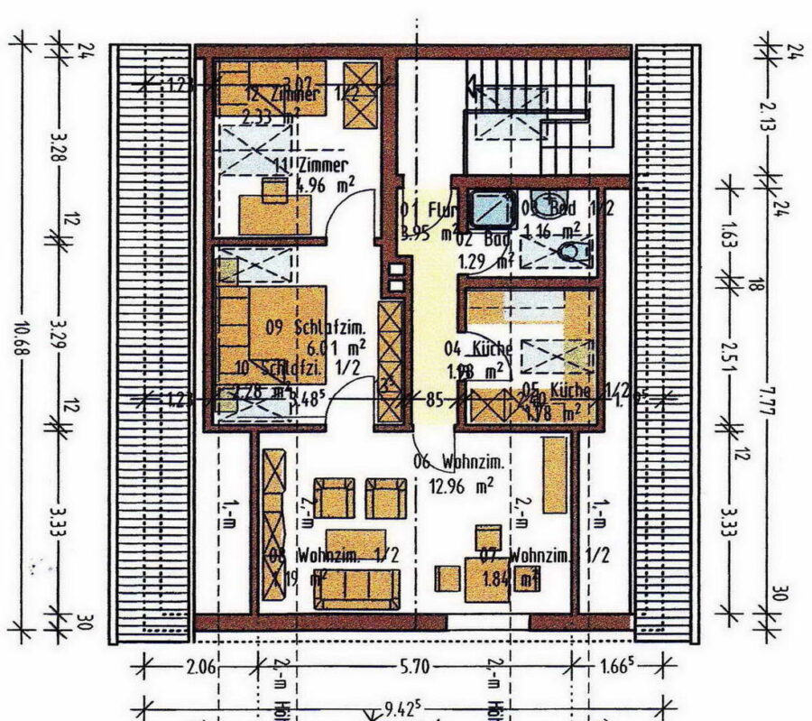 Die Wohnung befindet sich im Dachgeschoss eines 5-Familienhauses.